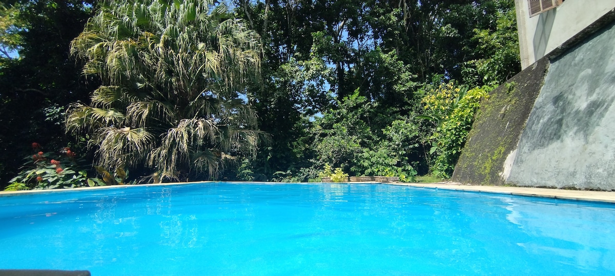 Super exclusivo!!! todas as torneiras e chuveiro possui água potável e mineral acomodação suite com ar condicionado wi-fi super potente, TV smart Full HD com canais de streaming, acomodação com entrada privativa e cozinha externa ! A menos de uma hora do Rio, vc estará, com muito conforto, ao lado de árvores centenárias, trilhas privadas, montanha, cavernas, piscina de água da fonte. Venha para um descanso genuíno na natureza.