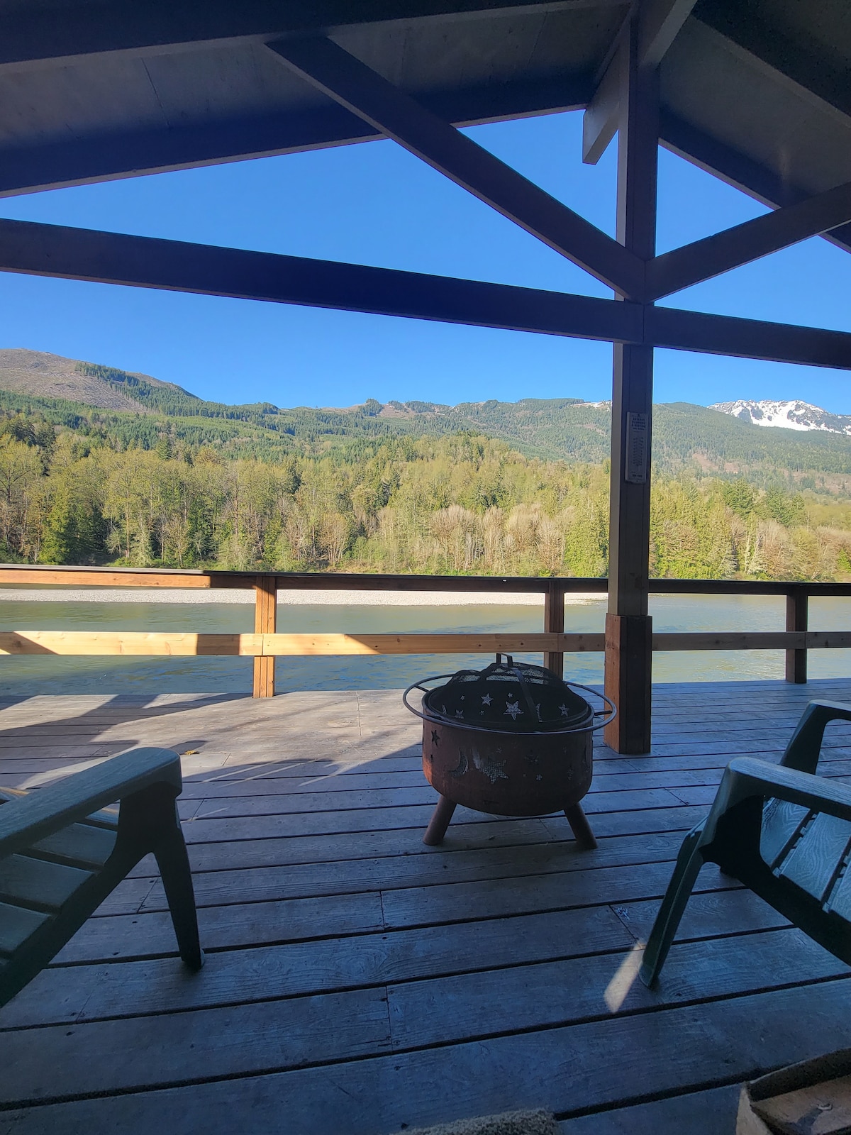 Welcome to our riverfront cabin on the high bank of the Skagit River. Our cabin is an easy and beautiful 40 minute drive from I-5 and just across the river from the cute small town of Concrete. Come get away from the city and relax on a private wooded 1/3 acre lot and an expertly updated home that includes live-edge countertops, new plank floors, a full size bathroom with updated flooring and penny-tile shower, and an oversized deck to sit outside and enjoy the peaceful sounds of the river.