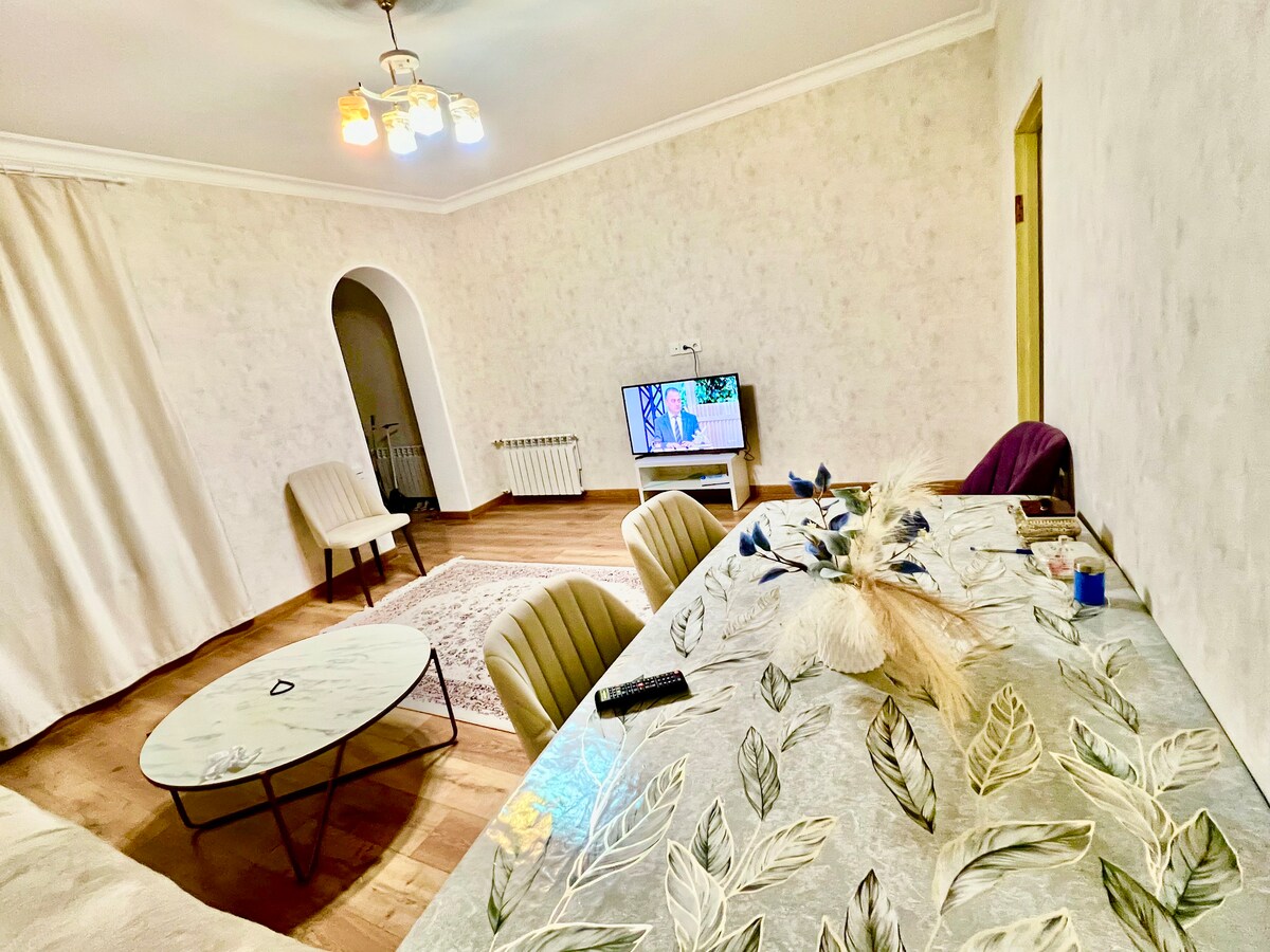 A 2023 renovated, 70 m² size two-bedroom clean spacious apartment in the heart of the city. All attractions, restaurants, shopping centers, parks, museums, old town are nearby. This apertment is in walking distance from: Winter Park (2 min) Torgovaya/Fountain Square (6 min) Old Town (10 min) Palace of Shirvanshahs (16 min) Maiden Tower (12 min) Baku Boulevard (12 min) Shopping center 28 Mall (16 min) 24-hour supermarket BRAVO (7 min)
