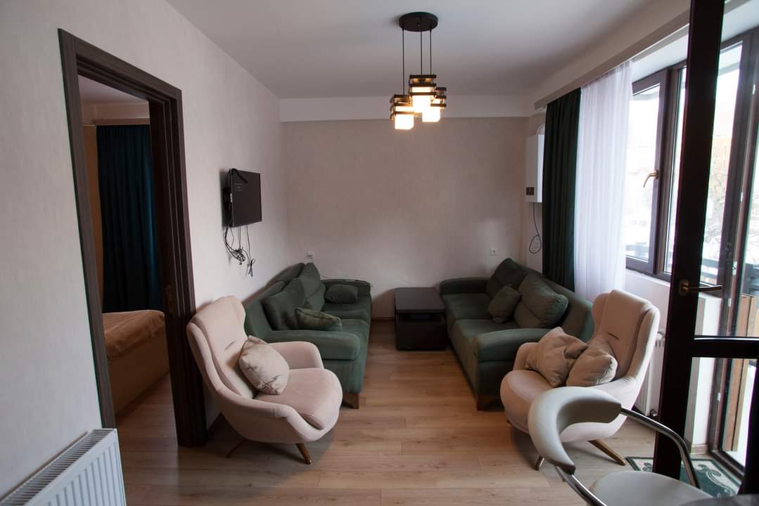 Korteri omadused: đ 2 eraldi magamistuba đ Diivanvoodi 2 inimesele đ 3 kaunite vaadetega rĂ”du đ Voodipesu, rĂ€tikud, föön đ TĂ€ielikult varustatud köök ja nĂ”ud đ WiFi ja teler đ pesuruum đ Privaatne parkimiskoht Grillimisala đ Ă”ues đ LĂ€heduses: ketis supermarketid, laste mĂ€nguvĂ€ljak, restoranid, 25-meetrised nĂ”lvad ja Kokhta/Mitarbi suusarajad đ Soodushinnaga Jeep ja ATV ekskursioonid meie kĂŒlalistele (Mitarbi, Tabatskuri, Thori oru, Didveli mĂ€gi)