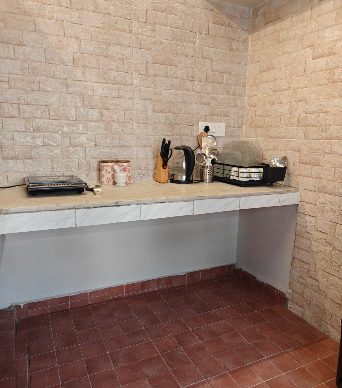 A fully independent and comfortable 1BHK home located on the ground floor, perfect for,small families,business travelers & couples. The property offers private entrance, parking space, and terrace access. Being road-facing, the location is easy to find with convenient connectivity to nearby markets and transport.Exterior CCTV ensures safe and secure stay for guests. 🚘 •A self-drive car can be arranged on advance request, subject to availability.