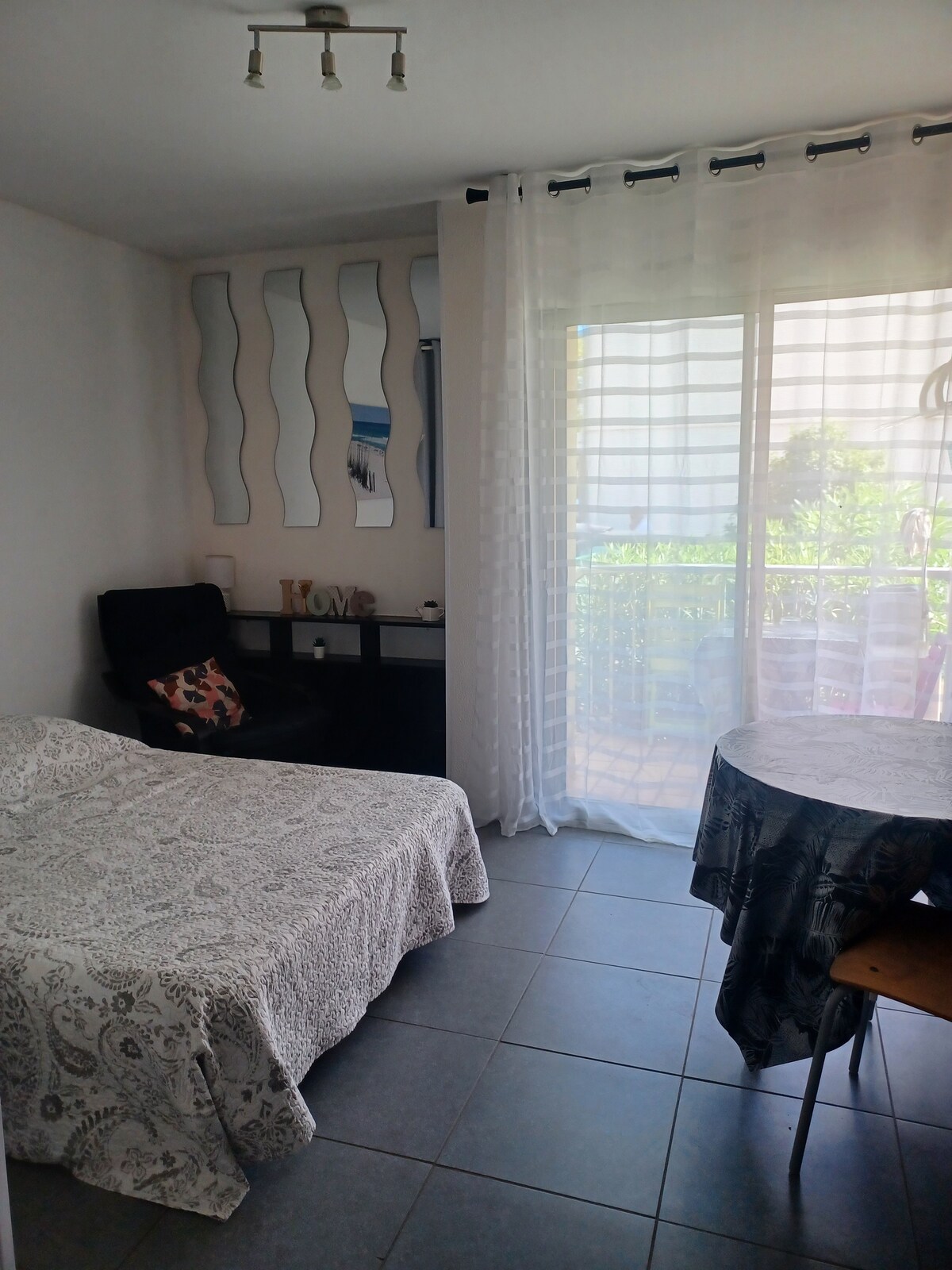 Suur valgusküllane stuudio (33 m2), kõik mugavused vaikses piirkonnas 10-minutilise jalutuskäigu kaugusel linna südamest, turust ja randadest. Turvaline privaatne parkimine (auto/mootorratas/jalgratas). Naudi oma peatumist selles majutuskohas, kus on väga meeldiv elada ja ideaalne asukoht Balaruc-les-Bainsi poolsaarel.
