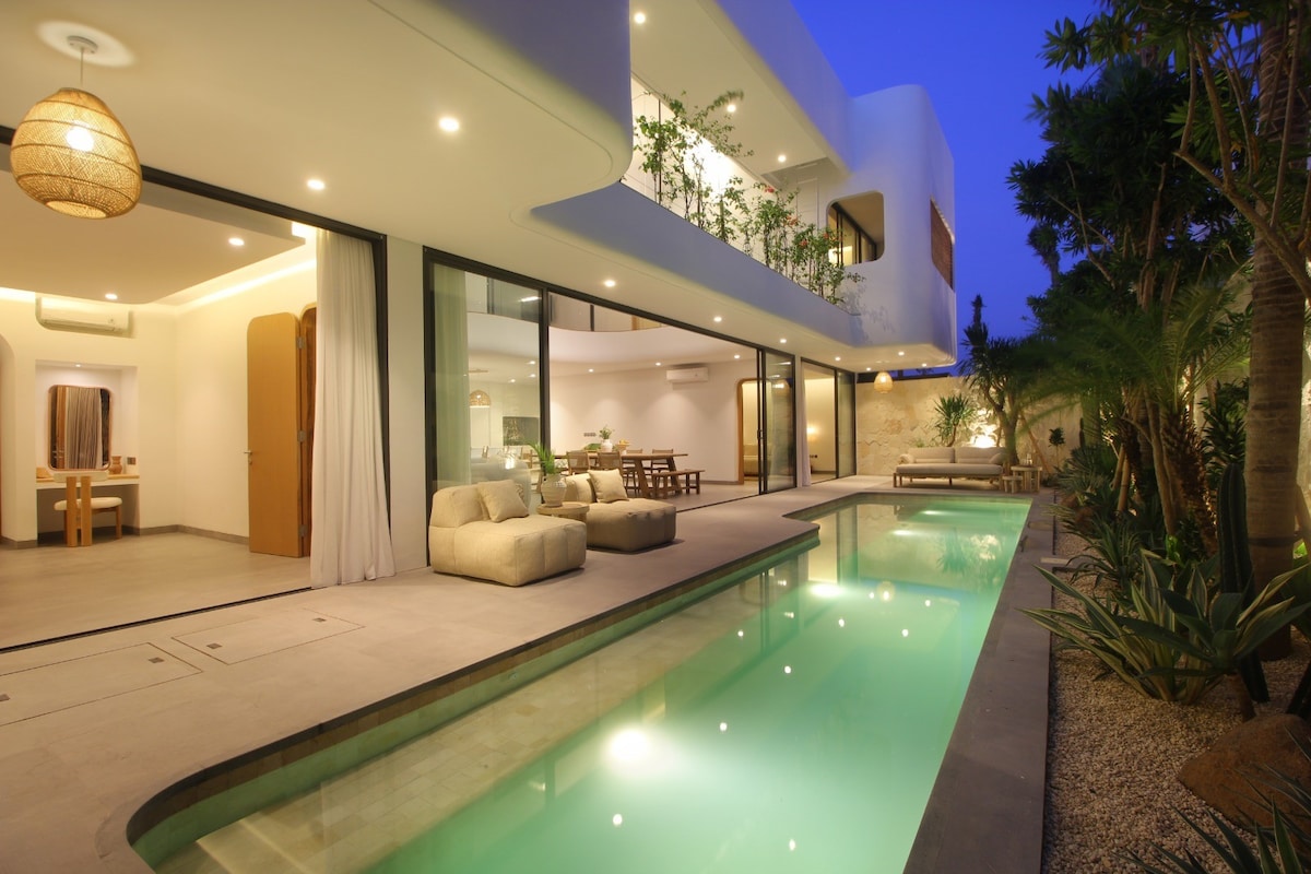 Spacious 5-bedroom villa in Umalas, perfect for families and groups. Enjoy a 30m lap pool, outdoor bar, BBQ, and lush tropical garden. Open living spaces and elegant design create a true Bali escape, just minutes from Seminyak and Canggu beaches, cafes, and dining. Includes full-time staff, daily cleaning, and super-fast 500Mbit fibre optic Wi-Fi for a seamless, worry-free stay.