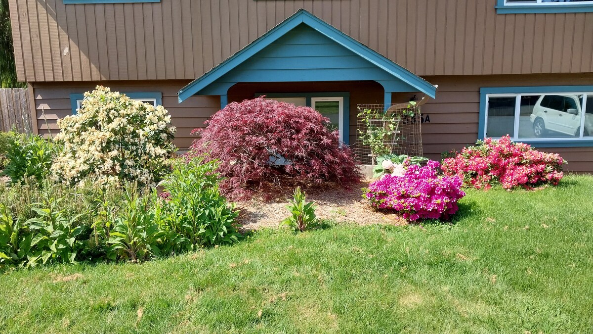 Tule peatu The Restful Nestis Naudid kaheinimesevoodit, diivanit, 3 tk vannituba, kööginurk, privaatne terrass ja oma parkimiskoht. Lõõgastu selles rahulikus ja stiilses iseseisvas sviidis. See on väike hubane sviit, kuid hästi paigutatud, kus on kõik vajalik ja palju muud, lõõgastav, vaikne ja rahulik. Sviit toetub otse pargile, 2-minutilise jalutuskäigu kaugusel rannast, mis asub väljakujunenud Comoxi naabruskonnas, ja 5-minutilise jalutuskäigu kaugusel Comoxi kesklinnast.