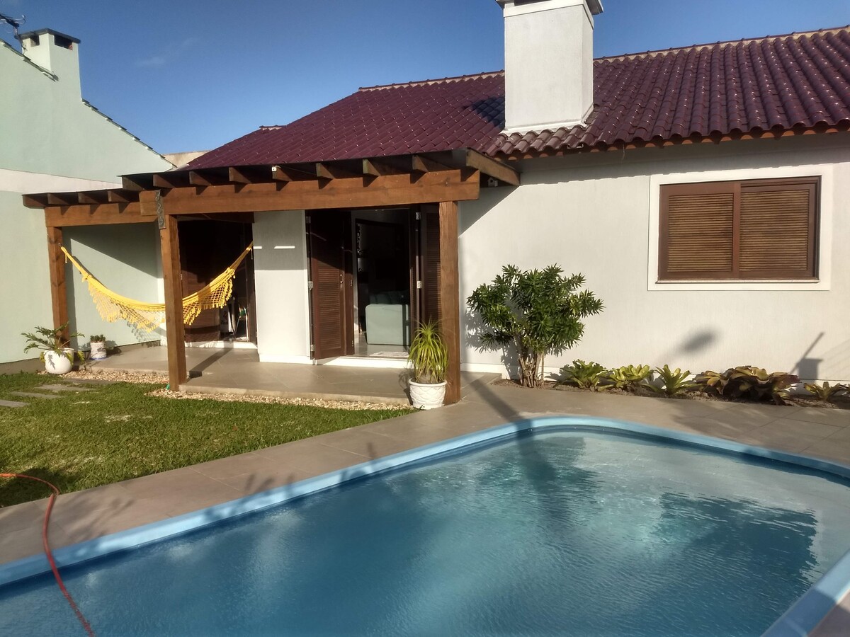 Casa confortável em Noiva do Mar/Xangri-lá, ventiladal, camas boas, piscina com aquecimento de placa solar, alarme monitorado, Tv 50 smart, WI-FI, máquina de lavar roupa, secador de cabelo. Móveis e utensílios novos. Ideal para descanso e integração. Perto de tudo, 150m da praia. Check-in e check-out horários flexíveis. A 1° suíte dispõe cama queen e ar, 2° suíte dispõe de duas camas box de solteiro e ar e o 3° quarto tem 7m2 e dispõe de cama de casal retrátil e escrevaninha, com ventilador.