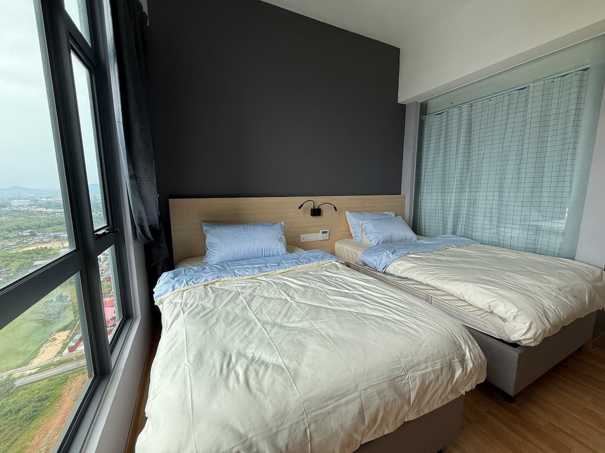 This studio apartment in Timurbay, Kuantan is perfect for couples, friends, and small families seeking a relaxing getaway. With unobstructed views of the pool and sea, you can enjoy the sun and quality time with loved ones. Complete with all necessary amenities and facilities, including a modern kitchen and cozy bedroom, this apartment promises a memorable vacation.