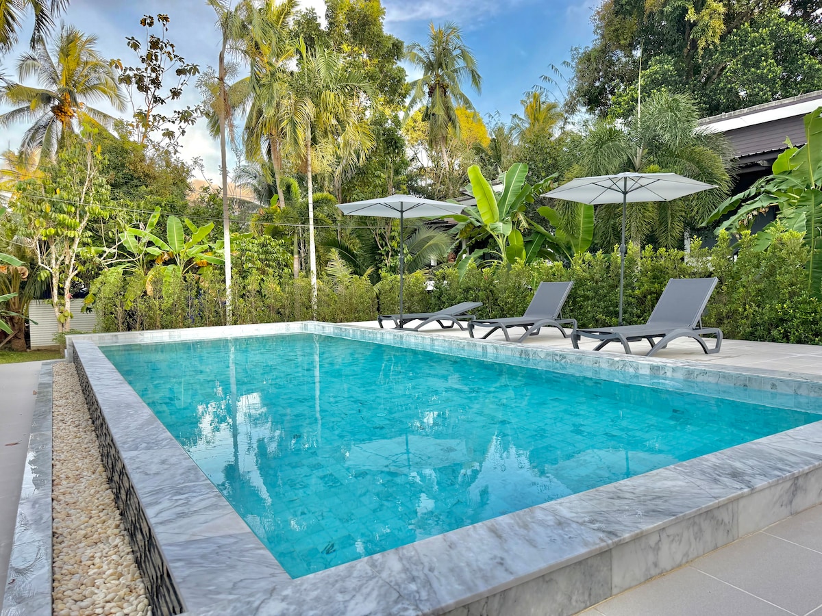 Äsja ehitatud kaasaegne 2 magamistoaga maja Ban Tais, Koh Phanganis – sobib ideaalselt paaridele, väikestele gruppidele, kaugtöötajatele ja pikaajaliseks peatumiseks. Naudi 1000/500 Mbit/s kiirusega kiudoptilist WiFi-ühendust, konditsioneeriga magamistube, täielikult varustatud kööki, mugavat elutuba, privaatset siseõue, kus on diivan, ja vaikset aia atmosfääri. Jalutuskäigu kaugusel Ban Tai rannast, kohvikutest, jõusaalidest, tõukerattarendist ja joogastuudiost.