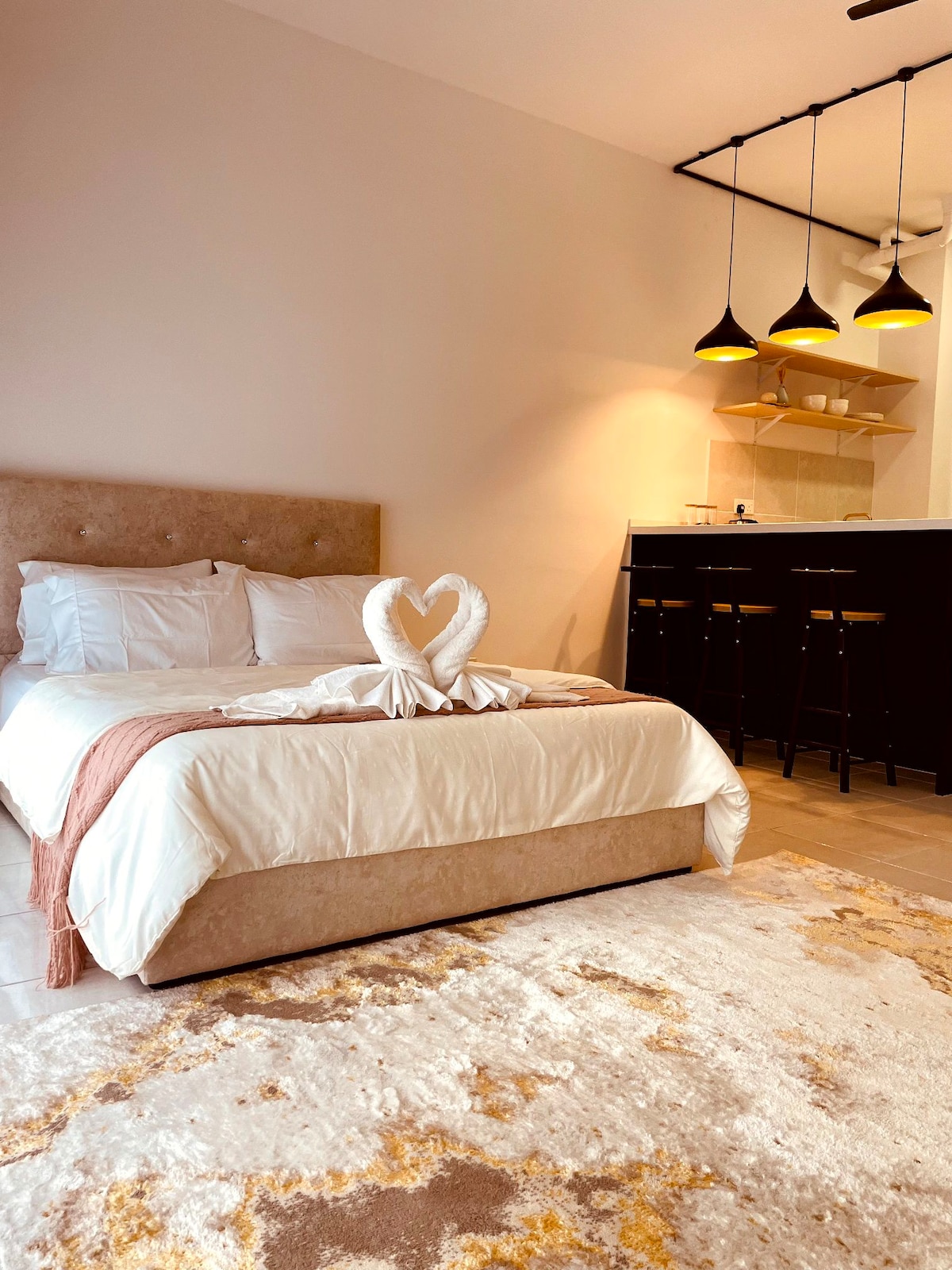 Lõõgastu selles hubases, täielikult varustatud ja stiilses stuudios uues premier korterelamus KLIA lähedal. Mesamalli kõrval on toidukaubad, söögikohad, kino ja palju muud. Naudi eriti laia voodit, 200 Mbit/s wifit, 43-tollist Google TV-d, kööginurka, söögilaudu ja töölaudu - ideaalne puhkuseks või kaugtööks. Lõõgastu mägivaadetega infinity-basseinis, püsi jõusaalis vormis või lõõgastu katusealal, kust avanevad imelised vaated. Ideaalne lühi- või pikaajaliseks peatumiseks. Olenemata sellest, kas lendad sisse või töötad kaugtööd, tundub see majutuskoht kodune