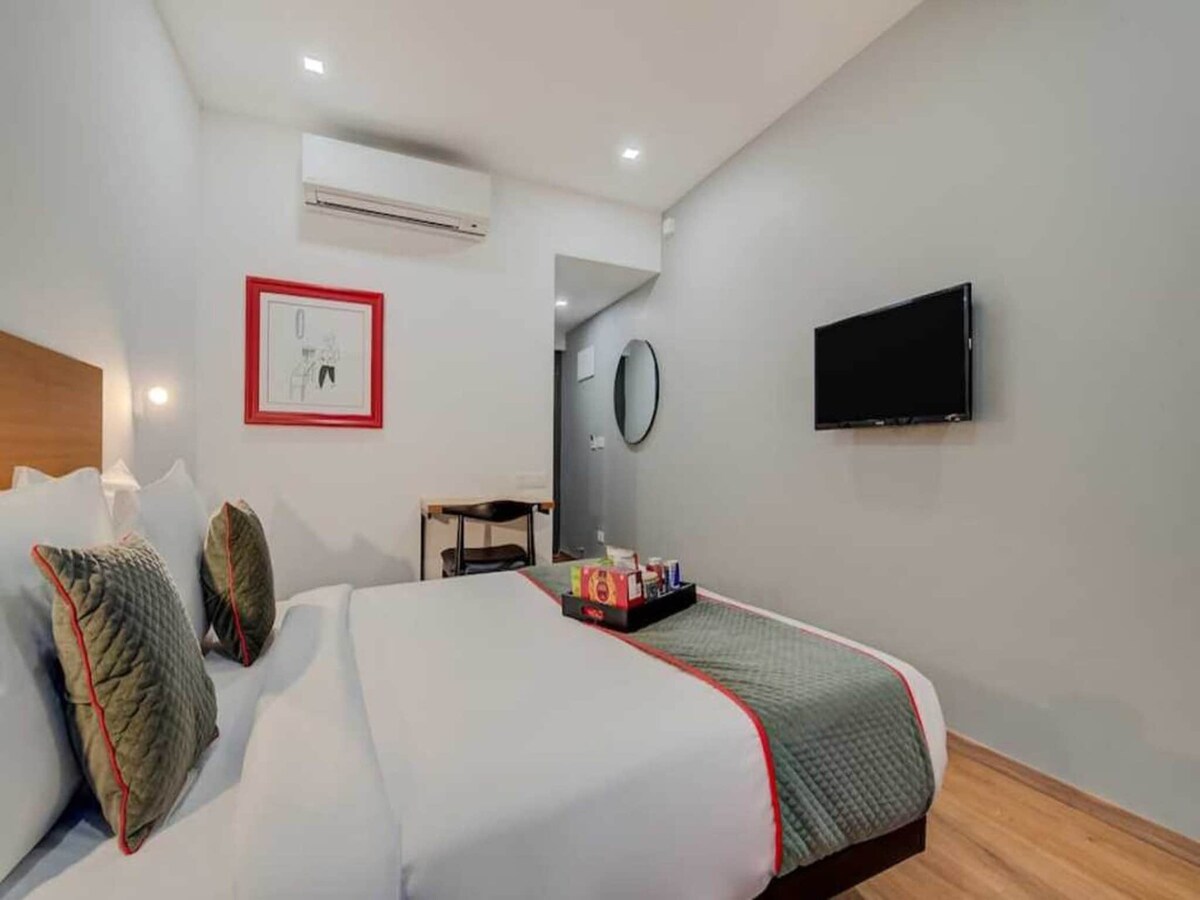 Designed for effortless business travel, the Superior Queen Room offers a clean, calm, and efficient stay. The room features a plush queen bed, work-friendly layout, thoughtful lighting, air-conditioning, and a soothing ambience for deep rest. Ideal for solo travelers, short corporate stays, and quick city stopovers in Magarpatta City.
