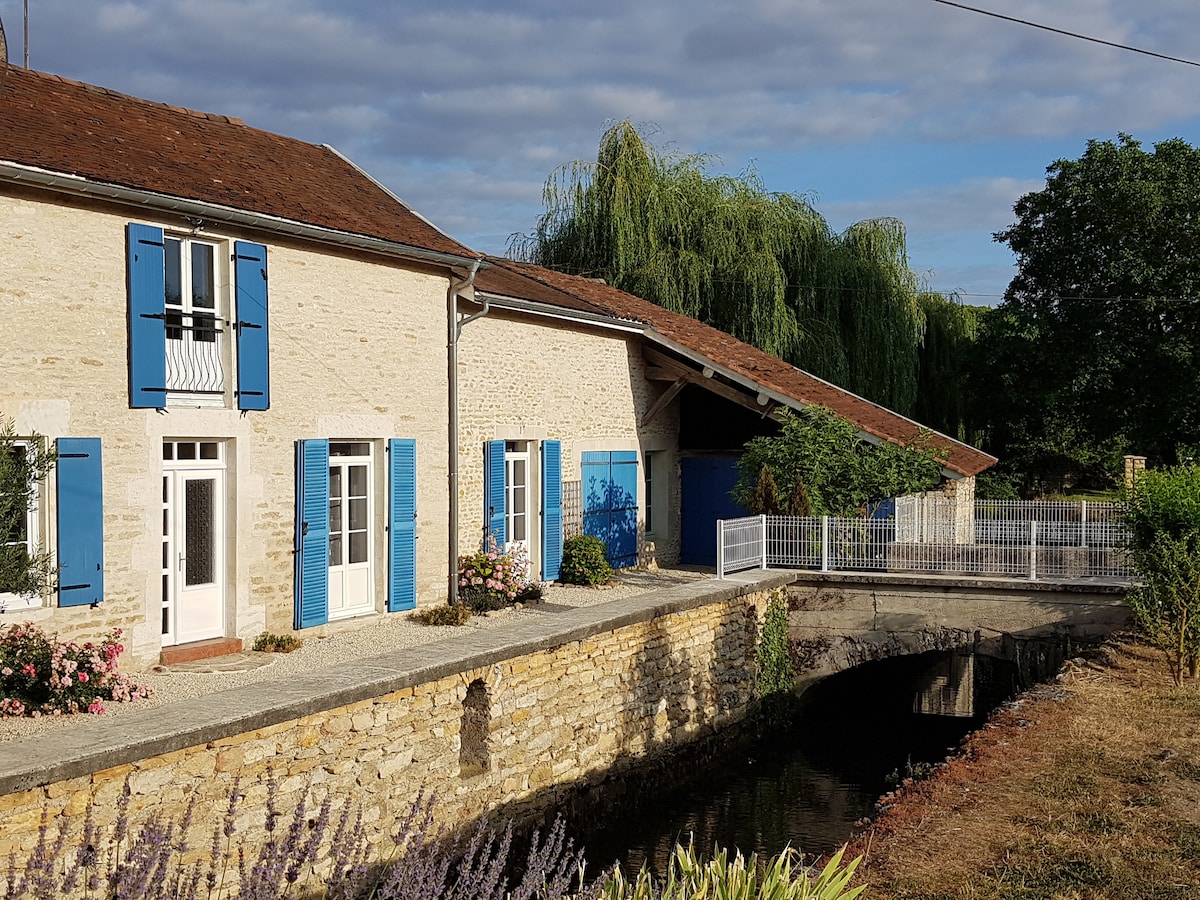 Endine vesivesk, mis asub Champagne 'i viinamarjaistanduse südames oja ääres. Värskelt renoveeritud veski ülakorrusel on 2 magamistuba, väga hästi varustatud köök, suur elutuba (umbes 35m²) koos võimalusega 2 lisavoodit. Turvaline ja täielikult suletud terrass aiamööbli, päevitamise ja grilliga. 5 minutit Niglolandi pargini, 10 minutit Lac d 'Amance' i ja 45 minutit Troyesi ja tehasepoodideni.