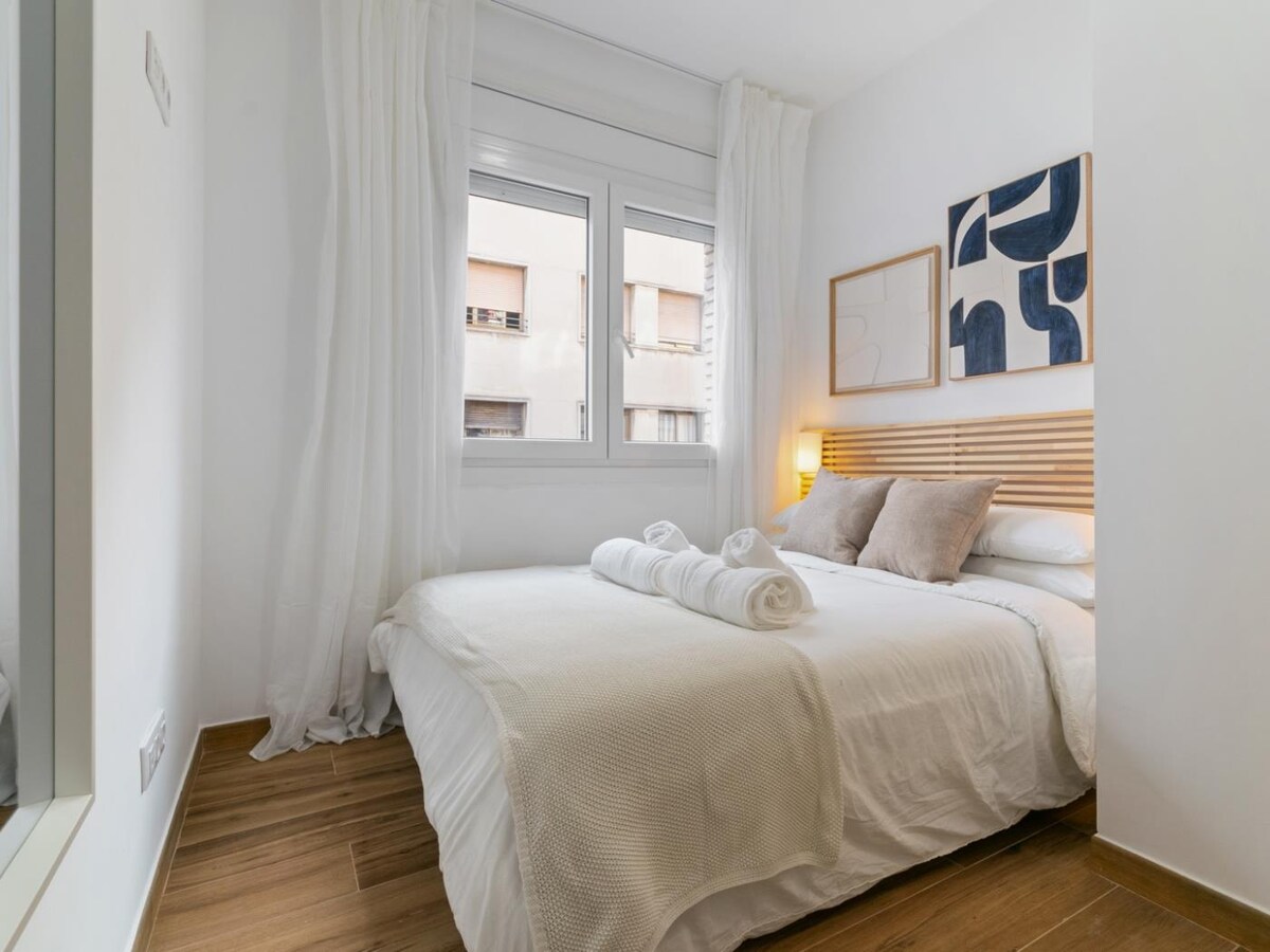 Private room, small but functional, located in the Collblanc neighborhood. It features a double bed, and self check-in with a PIN code. The décor is minimalist and cozy, with natural light and a peaceful atmosphere. * Please note that you are booking a small bedroom 📌 Tourist tax: €2.20 per person per night, charged separately. The property is located in a lively area, so some noise may be heard at night.