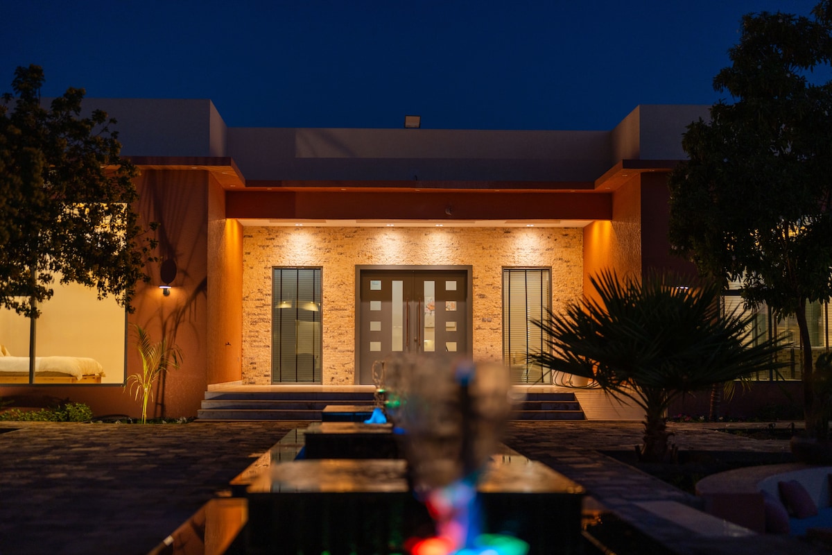A hotel resort dedicated to couples to live a unique atmosphere designed in a unique and modern style to suit your relaxation in different atmospheres It has Private Pool with double hight living room and master room view to swimming pool and living room Swimming pool have temperature control Quite Place and safely 40 Km from Muscat Airport 35 Minutes from Airport