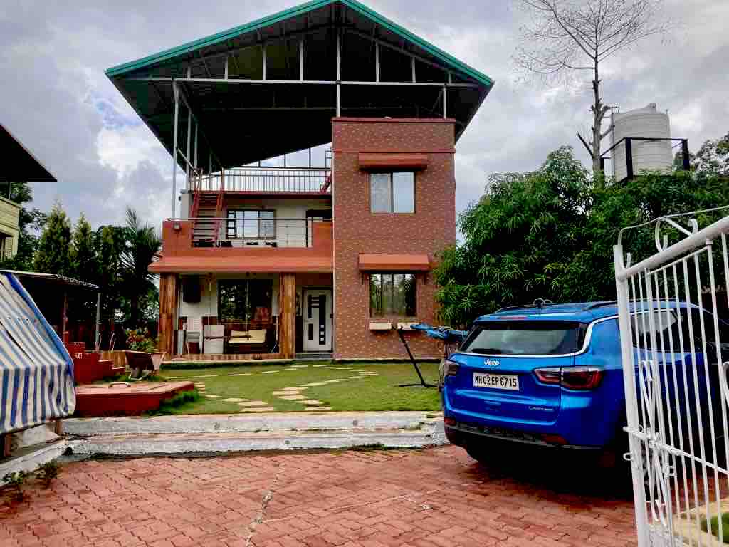This beautifully maintained 3BHK farmhouse offers the perfect blend of luxury. Nestled amidst greenery, it boasts large AC bedrooms, a fully equipped kitchen, ample natural light, and an open living area ideal for families or groups.Whether you're working remotely or simply need a weekend escape, this farmhouse provides a serene environment with all amenities. Enjoy privacy, space, bird chirping, fantastic night under the stars and the charm of countryside living just a short drive from the city