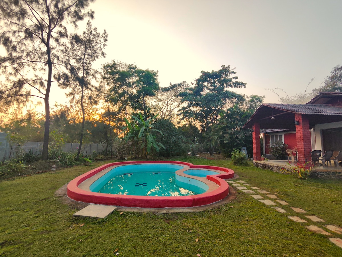 Our beautiful property is a 3 bedroom(AC) villa with private pool and unique fusion of modern Amenities, traditional design elements & antique décor giving you a memorable royal stay experience with your family. Additional 2 bedrooms available with extra charges. 24hr caretaker with expertise on authentic Maharashtrian food(Veg & Nveg) Refer customer reviews for this. Located in Sahyadri Valley with historical importance near Karjat & serene mountains on 3 sides. Tar road till villa.