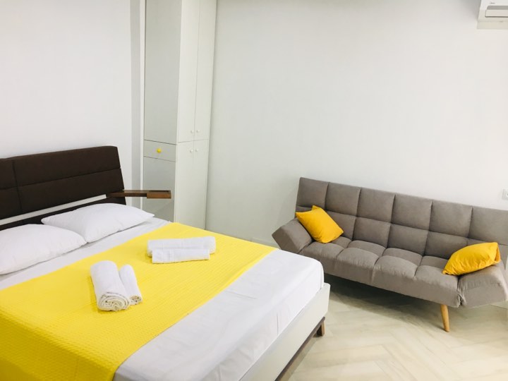 appartment is new, studio type. everything is new in it. there is everything for cooking and eating. It's near sea and boulevard. the view is amazing day and at night. near apartment is everything what tourist needs. park, sea, boulevard, aqua park, big grocery shop and bus stops.