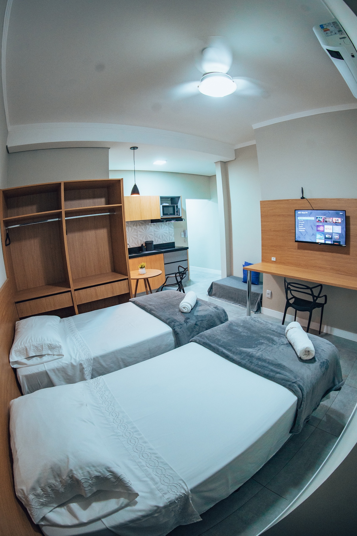 Nossa stuudios on 35 m2 ja privilegeeritud asukoht Baurus. See asub Bauru Shoppingu kõrval, baaride, restoranide tänaval, Centrinho/Uspi, CPO ja FACOPi lähedal. See on kaasaegne ja hubane majutuskoht, kust avaneb imeline vaade lennujaamale, otse päikeseloojanguni. On turvaline öelda, et sinu broneering ei ole lihtne viis majutamiseks, vaid pigem suurepärane ja meeldejääv kogemus. Hoones on ööpäevaringne sissepääs, jõusaal, turg, pesumaja ja mängutuba.