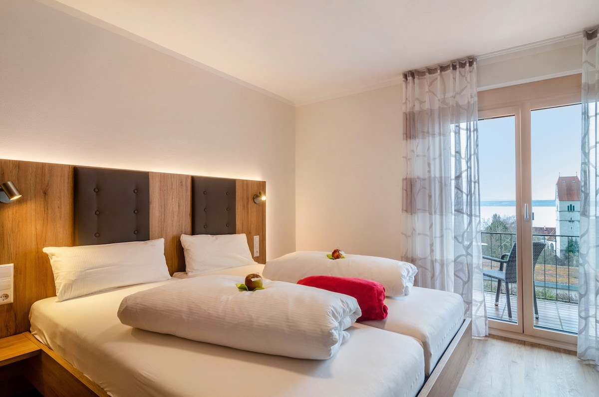 The Room Doppelzimmer in Immenstaad am Bodensee is the perfect accommodation for a stress-free holiday with your loved ones. The 40 m² property consists of 1 bedroom and 1 bathroom as well as an additional toilet and can therefore accommodate 2 people. Additional amenities include Wi-Fi as well as a TV. Public transport links are located within walking distance. A parking space is available on the property. Pets, smoking and celebrating events are not allowed.