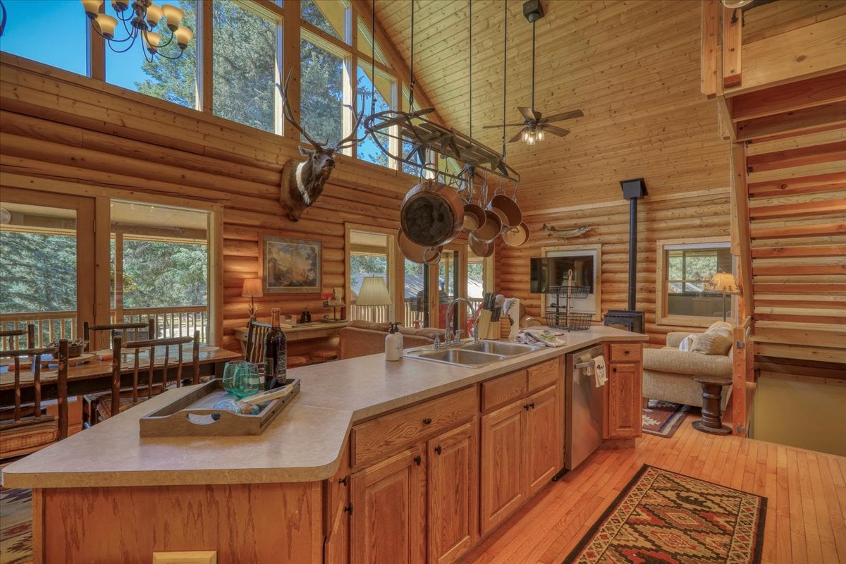 This log cabin style house has great views with deck, hot tub, fenced in back yard, backyard chickens, and is walking distance to Lake Simpatico and two playgrounds for children. The location is great for those wanting to enjoy Durango (20 mi) and Pagosa (50 mi) . If you are into fishing, hiking, hunting, paddle boarding, etc. this spot is perfect (there are many lakes nearby). The house is also right between Purgatory Resort (one hour north) and Wolf Creek Ski Area (one hour south).