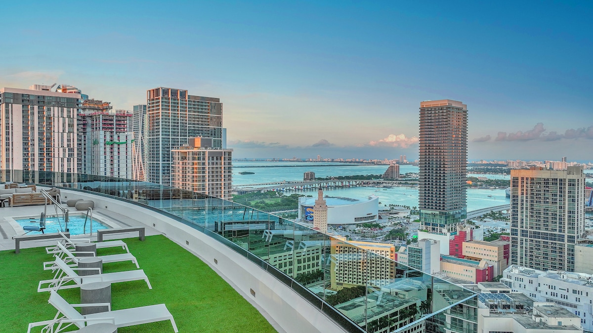 Puhkus Miamis! 🌴 See stiilne korter asub vaid mõne minuti kaugusel Freedom Towerist ja 🏀 Kaseya keskusest (Miami Heat kodu), pakkudes rabavaid linnavaateid 🌆 ja luksuslikku mugavust. Lihtne juurdepääs Brickelli🎨, Wynwoodi ja kruiisisadamatele on 🚢põnevus sinu käeulatuses. Tutvu Bayside 'i🏝️ 🔬, Frosti teadusmuuseumi ja Arsht Centeriga🎭. Lõõgastu kaasaegses lõõgastumiseks mõeldud majutuskohas, kus on katusebassein ja spordikeskus 💪- ideaalne baas ainulaadsete Miami elamuste jaoks