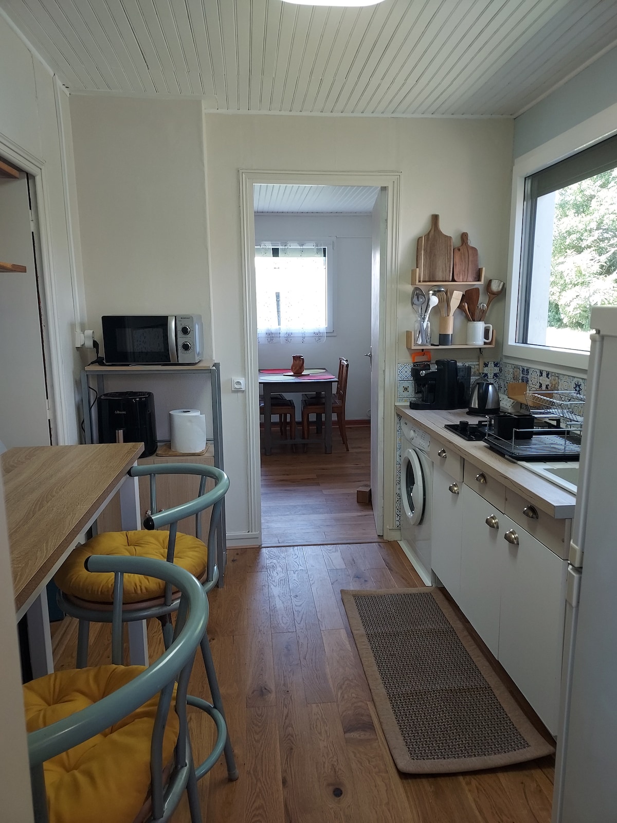 Võluv maja, täielikult renoveeritud , vaikne, valgusküllane , WiFi avaneb suurele terrassile ja suletud aiale, mugav, ideaalne paarile/2 lapsele või 3/4 täiskasvanule . Esimesel korrusel on avatud ruum elutoaga 2 diivanvoodit, televiisor, söögituba, täielikult varustatud köök. 1 wc, nõudepesumasin. Ülakorrusel on mugav väike magamistuba katuse all, kust avaneb vaade terrassile ,voodi 190 x 140 cm,televiisor,riietusruum ja hoiukapp,väike vannituba koos dušiga, akna kraanikauss, 1 WC. VMC