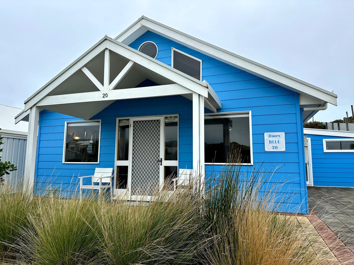 Welcome to 'Dunes Blue', one of three vibrant seaside 'Dunes at Robe' homes nestled side-by-side along Robe’s stunning coastline. Perfectly positioned near the Robe Golf Course and just a short stroll to the cliff tracks, Marina, and Main Street, this is the ideal spot to unwind and enjoy the charm of coastal living.