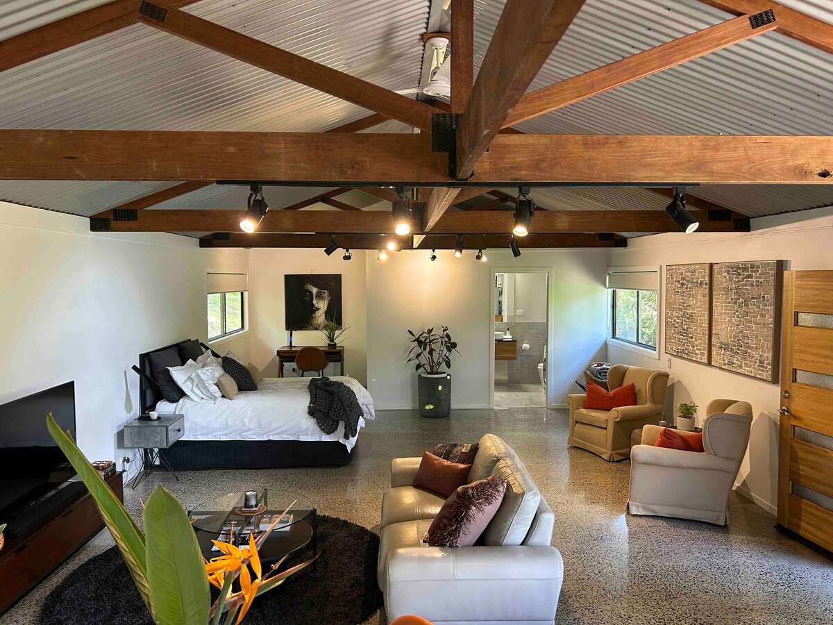 Studio@Mimburi pakub külalistele eraldatud, rahulikku ja keskkonnasõbralikku iseseisvat stuudio, mis asub vihmametsade ja eukalüptipuude keskel. Meie 95 aakri suurune majutuskoht pakub suurepäraseid vaateid Glasshouse 'i mägedele ja asub Bellthorpe' i rahvuspargis. Vaid lühike 20-minutiline autosõit Maleny, Beerwah ja Woodfordi. Stuudio puuküllased, kaasaegne sisustus, poleeritud tsemendipõrand, täielikult hooldatud köök, kaasaegne vannituba ja puuküttega kütteseade (küttepuud olemas).