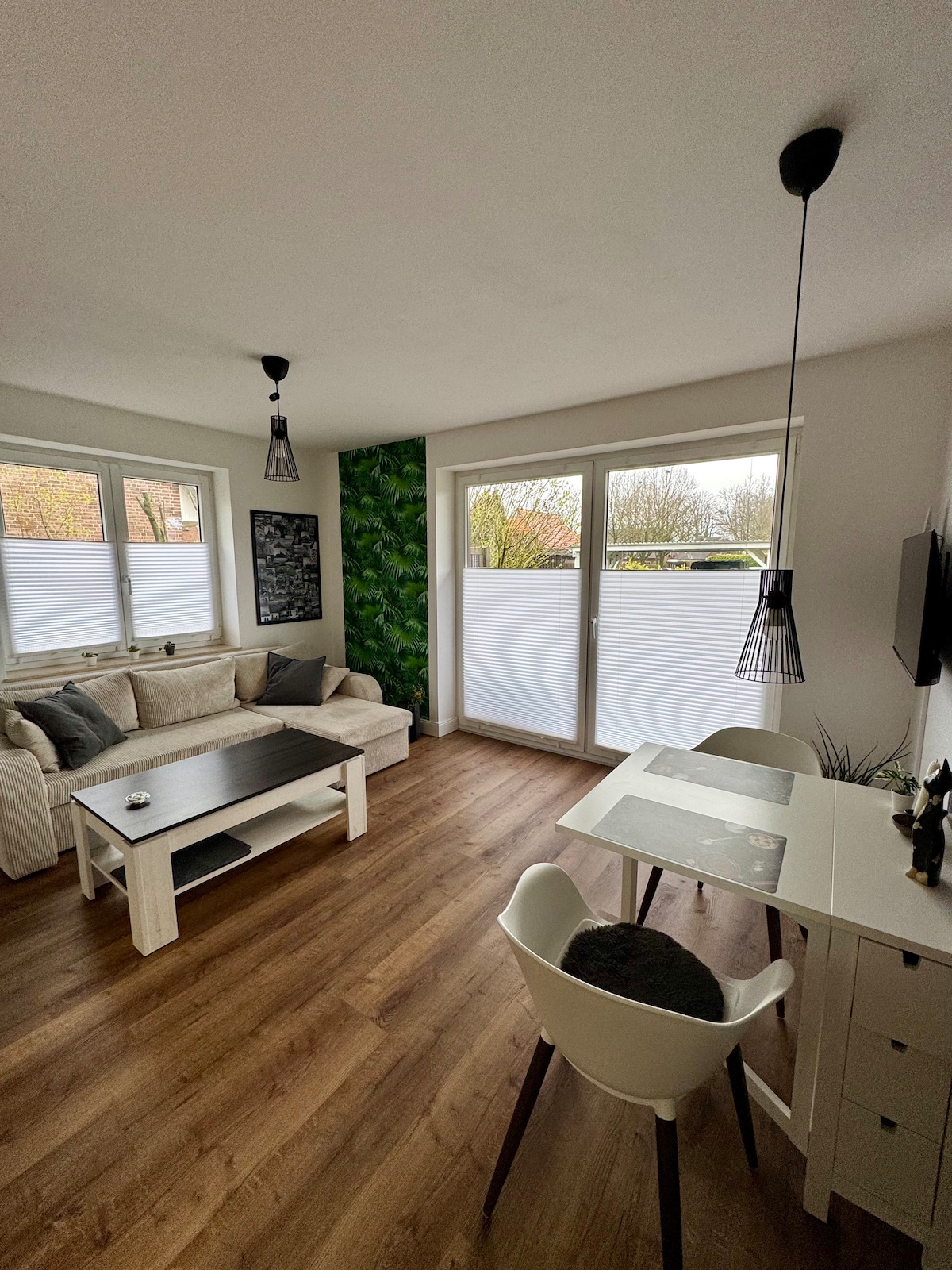 Valges 90 m ² korteris Hamburgi lõunaosas on suur elutuba avatud köögiga, söögituba, 2 magamistuba igaühes 160 x 200 cm voodiga, vannituba (sh. Föön), külaliste tualett ja lõuna/lääne terrass. Köögis on nõudepesumasin ja pesumasin, kuivati, espresso ja kohvimasin, röster, veekeetja. Elutoas on 42 " teler ja väike HiFi-süsteem. Hamburgi ja Lüneburgi on lihtne jõuda autoga (u 25 minutit) või ühistranspordiga.