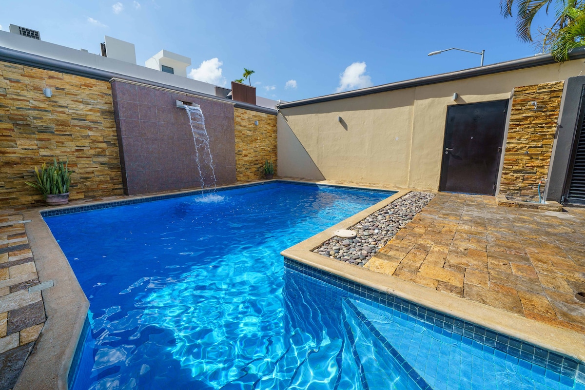 Naudi stiilset kogemust selles keskses asukohas. 10 minutit Cancuni rahvusvahelisest lennujaamast, 1 minut Walmartist/Sorianast/Super Akist ja Chedraui'st. 15 minutit Cancuni hotellitsoonist. Privaatne, ööpäevaringselt turvatöötajaga.