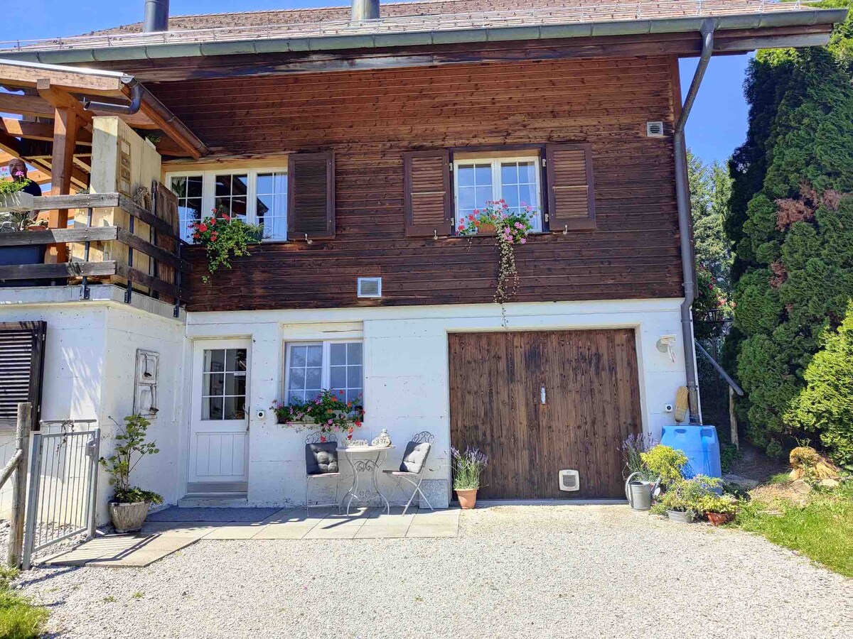 Ilus 2,5 tuba 1 kvaliteetse voodiga, suur laheaken magamistoas ja elutoas. Täielikult varustatud luksuslik köök Täisjalgne terrass ja hingematvad vaated. Vaikselt kinnitatud küla tipus 2 minuti kaugusel Charmey vannidest ja kõigist mugavustest. 1 minut suusamägedest