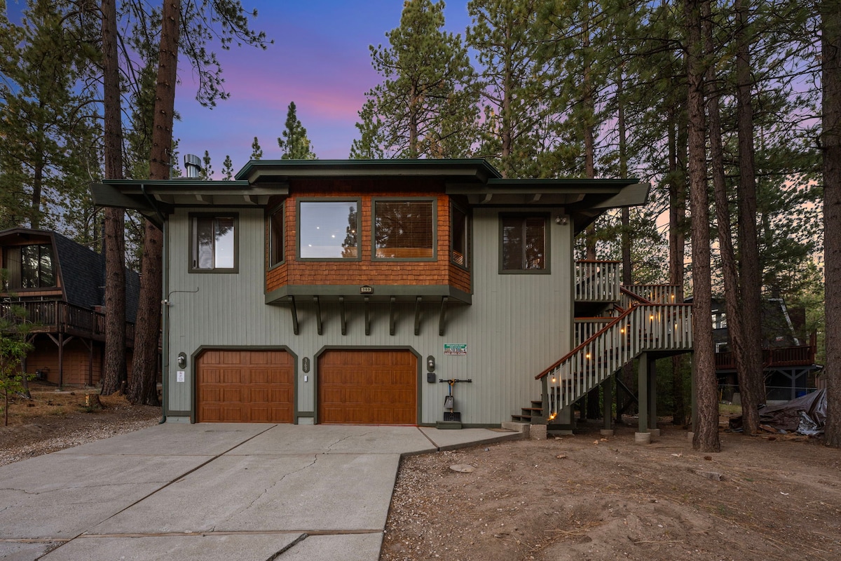 Tere tulemast Skyfall Lodge 'i, värskelt värskendatud kolmekorruselisse A-kujulisse majakesse Big Bearis, mis pakub rahulikku mägiretriiti, kust pääseb hõlpsasti seiklustesse. Kui otsid üksildast puhkust linna mürast ja stressist kaugel, oled selle siit leidnud! See vaikne majake, mida ümbritsevad imelise suusanõlva mäevaatega mändid, on vaid mõne minuti kaugusel. 4 magamistuba, 3 täisvannituba, suur terrass, puuküttega pliit, mänguautomaatide tuba ja mullivann, kõik, mida vajad lõõgastumiseks ja lõõgastumiseks!