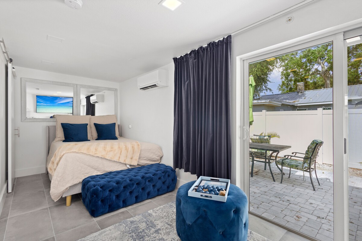 Tere tulemast oma moodsasse Sarasota külaliskorterisse – ainult täiskasvanutele, privaatne ja rahulik 🌞 26. jaanuaril 2026 renoveeritud privaatsel sviidil on eraldi sissepääs ja parkimine kahele autole. Naudi hubast laia kaheinimesevoodit, täielikult varustatud vannituba ja kööginurka, kus on mikrolaineahi, väike külmik, kohvimasin ja muu. Lõõgastu oma privaatsel päikesega valgustatud siseõuel. Püsi jahedas vaikse mini-split kliimaseadmega. Pakume rannapuhkuseks vajalikke esmatarbekaupu: päikesevari, toolid, külmik ja rätikud – ideaalne sinu Sarasota rannapäevadeks 🌴