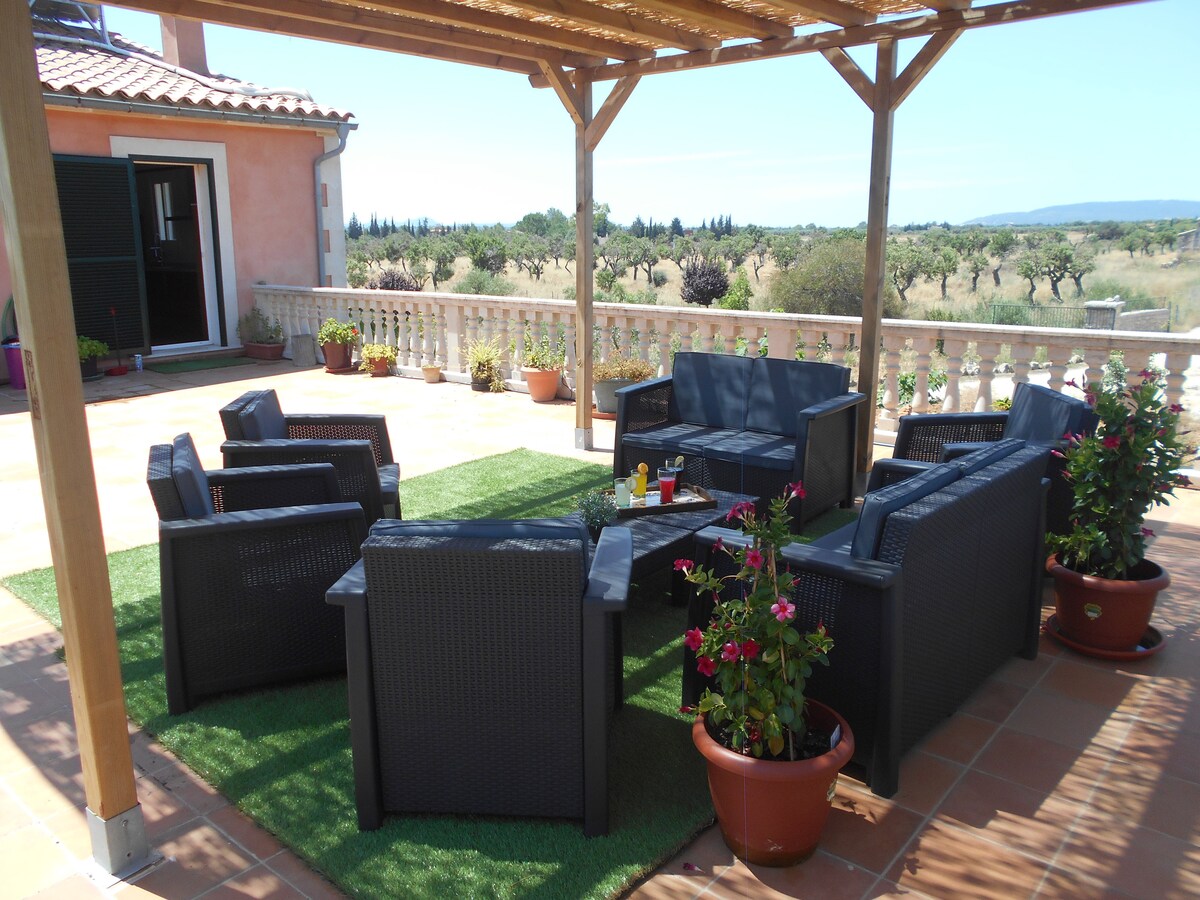 Võluv ja intiimne maja 10 min kaugusel Palmast, 7000 m2 Jardinist, bassein, soojendusega välimullivann ja ilus aed. See koosneb kolmest magamistoast ja kahest vannitoast. Sellel on suur terrass, kust avaneb vaade aiale, verandatele, kaminatele, grillile, kliimaseadmele ja küttele…Väga avar ja mugav. Vaikne ala 7 km kaugusel Palma kesklinnast, lennujaamast ja randadest. Supermarketid 1 km kaugusel. Ideaalne lõõgastumiseks, saareekskursioonideks, jalgrattasõiduks jne...Me armastame lemmikloomi, nii et too see tagasi ;-)