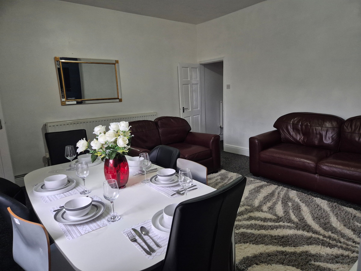 Kena suur terrassimaja, peateedel, kuid Rishtoni vaikses piirkonnas, ligipääsetav bussi ja rongiga, samuti kiirteede ühendused vaid kahe minuti kaugusel. Suurepärane asukoht Hyndburni, Ribble oru, Blackpooli, North Yorkshire 'i ja järvede jaoks. Kuna see on ruumikas ja neutraalselt sisustatud kodu, on see ideaalne äri- või puhkusereisiks. Palju ruumi ja väga ruumikas majutuskoht. Kaugemale minnes saad hõlpsasti maapiirkonda kõndida või leida Whalleys lõõgastavaks õhtuks häid baare.