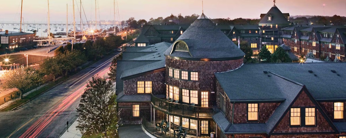 Stay at The Pell, a stylish boutique hotel in Middletown, just minutes from downtown Newport. Recently renovated with a coastal-chic vibe, it features The Helmway for local seafood and craft cocktails. Guests love the modern rooms, well-equipped fitness center, and free on-site parking—a rare find nearby. Ideally located near Easton's Beach and Newport Vineyards, it’s the perfect launchpad for your Rhode Island getaway.