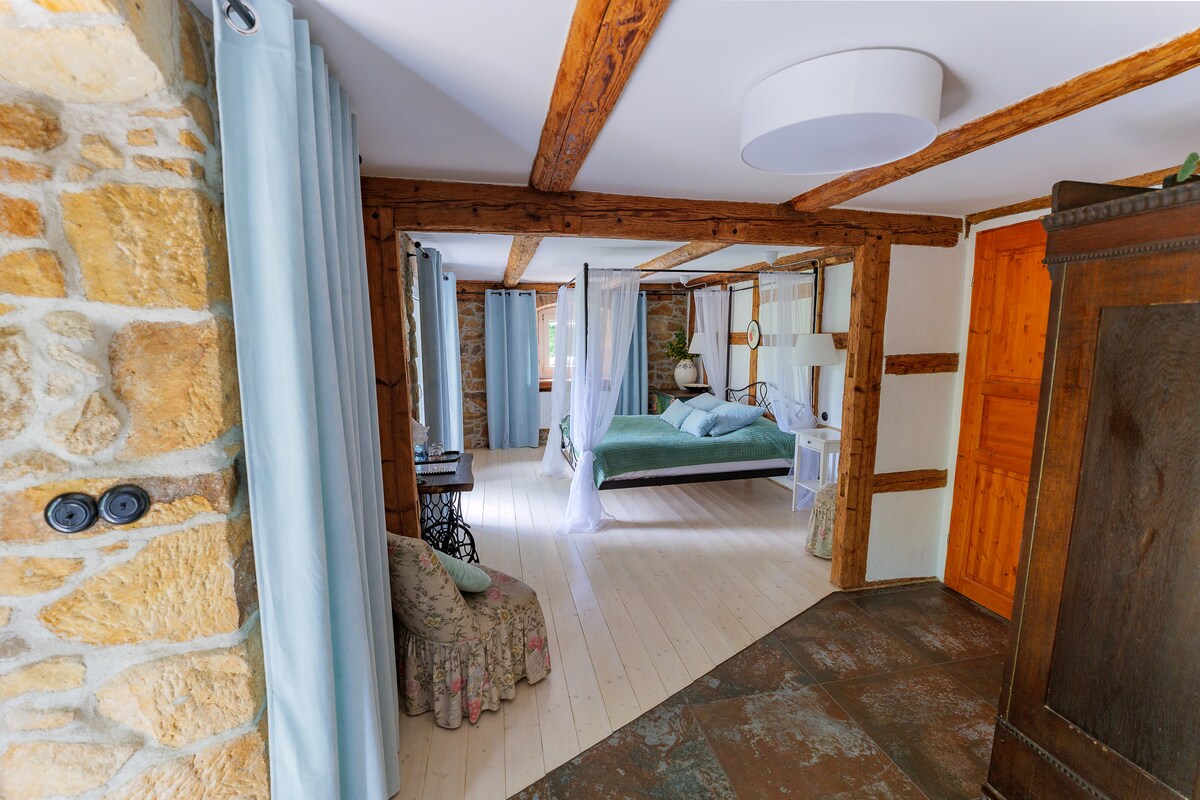 Iga torni fragment, iga tuba, on segu ajaloost, vanadest materjalidest ja keskaegsest vaimust koos disaini ja mugavusega. Siin pole midagi täiuslikku... ei mingeid õige nurki ega ilmselgeid ruume. Maja keskel on palju kive, puitpõrandaid, vanu restaureeritud aknaid, puidust trepp, mis meenutab sulle majutuskoha vanust. Seal on ämblikuvõrgud, mis ilmuvad eikusagilt. Seal on hing. Vannituba, mis kutsub sind pesema vanas malmist vannis ja saunas...