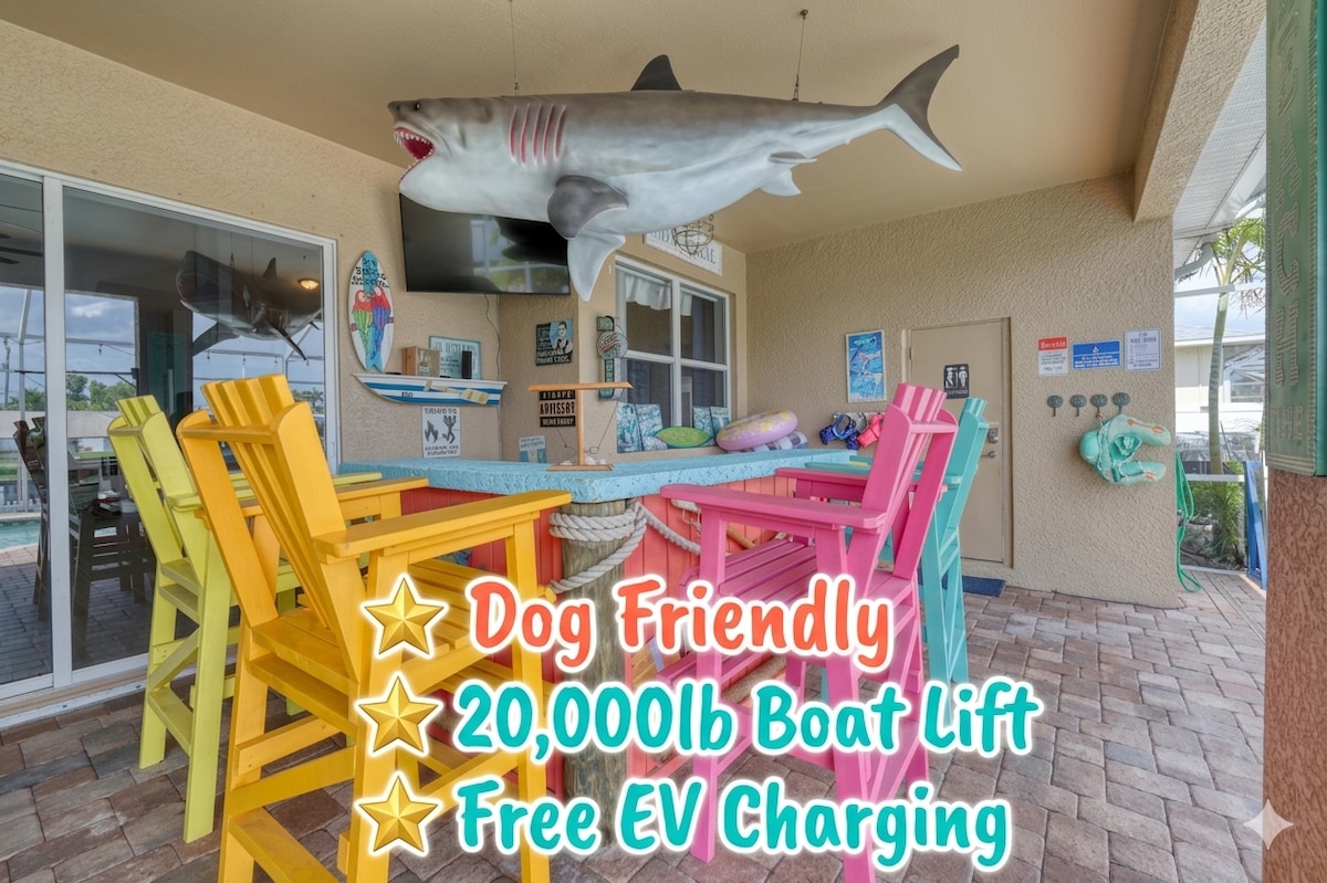 PARIMAID VEEPIIRKONDI CAPE CORALIS! Lühikese jalutuskäigu kaugusel rannast a. Selles 2500ruutjalga majutuskohas on hämmastavad päikeseloojangud ja vaated edelapoolsele veele kõigist peamistest eluruumidest ning Master Suite 'ist. Soojendusega bassein LED-valgustusega, sisseehitatud spaa, basseinivann, täielik pesumaja, Lanai, kamin ,wifi ja telerid igas magamistoas, privaatne dokk . Paat liftiga üürimiseks rendiga. Suur kahe autoga garaaž 5 jalgrattaga, rannavagun ja jahutiga kohapeal.