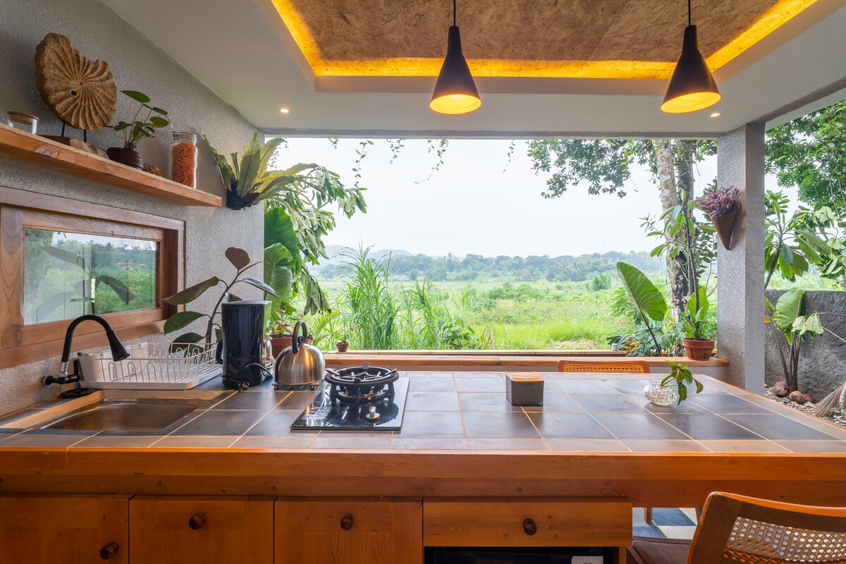 Forget all your worries in this peaceful place. the concept of a villa with beautiful nature and stunning views, plus architecture designed with a rustic feel and decorations that reflect local wisdom. We have 6 villa in the area, this villa has surrounded by 10ha rice field view. You can feel the spacious of greenery rice field, see the farmer doing their work, see some village animal if you're lucky.
