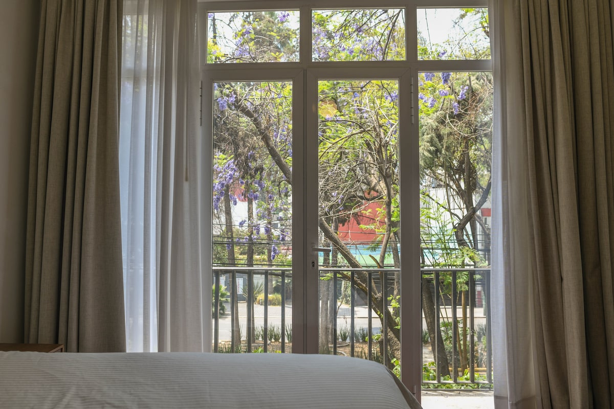 Naudi linna ainulaadses ja rahulikus asukohas Roma Suris. Meie loft Xoxotic (roheline Nahuatlis) asub vaid mõne kvartali kaugusel Condesast ja Roma Nortest, kahest linnaosast, kust leiad armsaid kohvikuid ja pagariärisid, kunstigaleriisid, indie butiike ja mõned Ladina-Ameerika parimad restoranid. Loft asub teisel korrusel ja lifti ei ole, seega pead sinna jõudmiseks kasutama treppi.