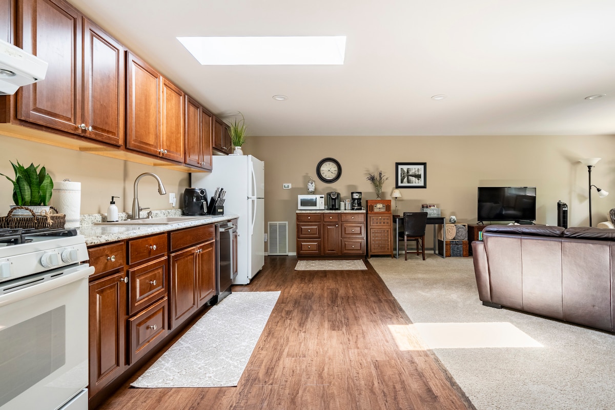Lõõgastu selles värskes ja avaras korteris, seejärel alusta hommikut sooja ja värske röstitud kohviga (sinine pudel) või sooja teega. Sa võid WFHere 'i! Lisasime just seisva laua, 34-tollise monitori ja autonoomse ergonoomilise kontoritooli. Tutvu oma ümbrusega: - Juanita Beach: 8 minutit sõita - Bellevue väljak 15 minuti autosõidu kaugusel - Seattle 'i kesklinnas 24 minutit sõita Selles kohas ei ole kööki, ainult mikrolaineahi, kuuma vee veekeetja ja külmik.