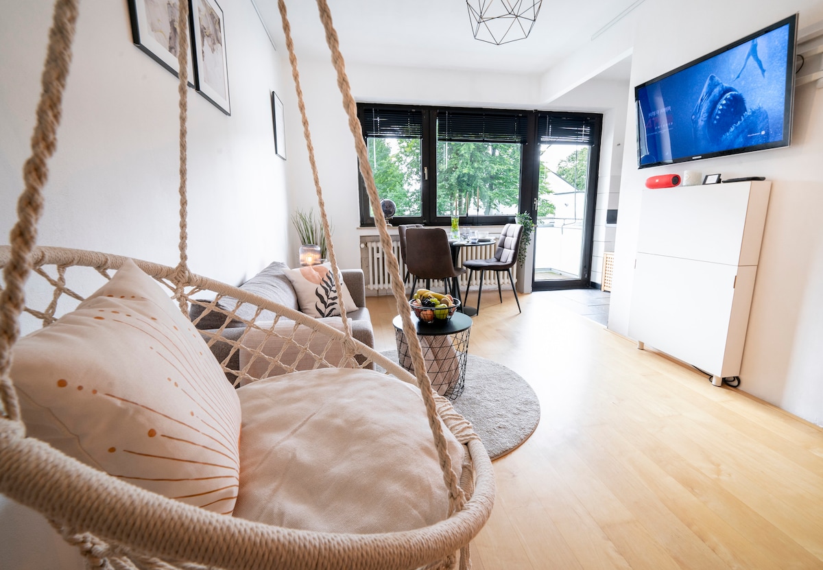See valgusküllane ja sõbralik korter asub vaikselt ilusas Rüttenscheider Mädchenviertelis. Messe Essen ja Folkwangi muuseum on 5 minuti jalutuskäigu kaugusel. Läheduses "Rü" kutsub oma mitmekesise restoranide, baaride ja klubidega – igaühele on midagi. Vaatamata hilisõhtuse tõuklemisele "Rü" nädalavahetusel on stuudio väga vaikne ja sa vaevalt usud, et elad keset tegevust.
