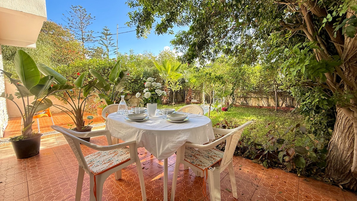 Ilus aiatasand Bahia Golfe Beachi kuurordis, mis koosneb 3 magamistoast, avarast konditsioneeriga elutoast, 2sdb-st, hästi varustatud köögist,kõigist tubadest avaneb vaade aiale ja terrassile, mis pakub majutuskohas värskust ja sooja õhkkonda. Saadaval on kiudoptiline.2 jalgratast. Ilus bassein on saadaval aastaringselt . Otsene juurdepääs merele, 3 km ümberehitatud corniche, privaatne rand, Vichy hotell,golfiklubi maja MARJANE lähedal isegi Glovo Mc Do kullerid on saadaval