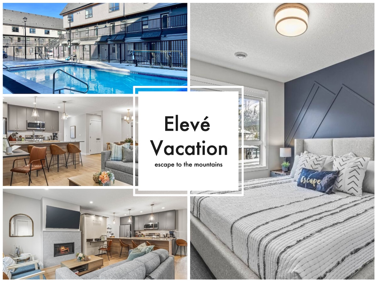 Contemporary Mountain style, vaulted ceiling Premium Penthouse Condo. Magnificent Rocky Mountain and Creek views with covered North facing Balcony with gas BBQ. Large open concept kitchen, dining and living space with fireplace. 2 Equally Grand Master on-suite Bedrooms, each with walk-in closet, seating area, king bed, and TV. Fully equipped Gourmet Kitchen. Contact-Free Hospitality. 5 minute WALK to DOWNTOWN CANMORE. FREE heated underground parking, Park Pass, Wifi and cable TV. Hot Tub.