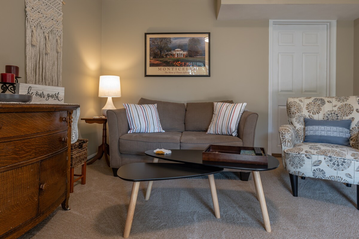 Privaatne ühe magamistoaga keldrikorter vaiksel tänaval, kiviviske kaugusel linna piirist. Vähem kui miili kaugusel linnakust ning vaid kolme miili kaugusel JMU-st ja Harrisonburgi kesklinnast. Hõlmab söögikööki (põhimugavustega) ja elutuba, mis avaneb kuni privaatse terrassi ja terrassini.