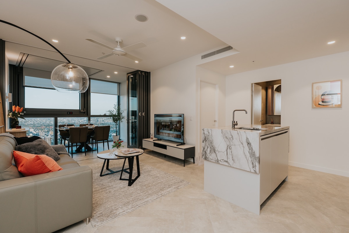 Unikaalne ja ruumikas 2 magamistoa/2 vannitoaga korter New Yorgi lofti tundega. Põrandast laeni ulatuvad aknad katavad 80% korterist, kust avaneb takistusteta vaade Brisbane 'i linnale, Brisbane' i jõele ja päikeseloojangutele Cootha mäe kohal. Luksuslik sisustus ja täiskokkide köök koos gaasiköögiga, kaks 75-tollist nutikat telerit ja luksuslikku voodipesu. Kompleksis on spaa, saun, bassein koos sülebasseini, jõusaali, kinosaali ning grilli ja spaaga 32. korruse katust. West Endi südames kõnnid kõige juurde!