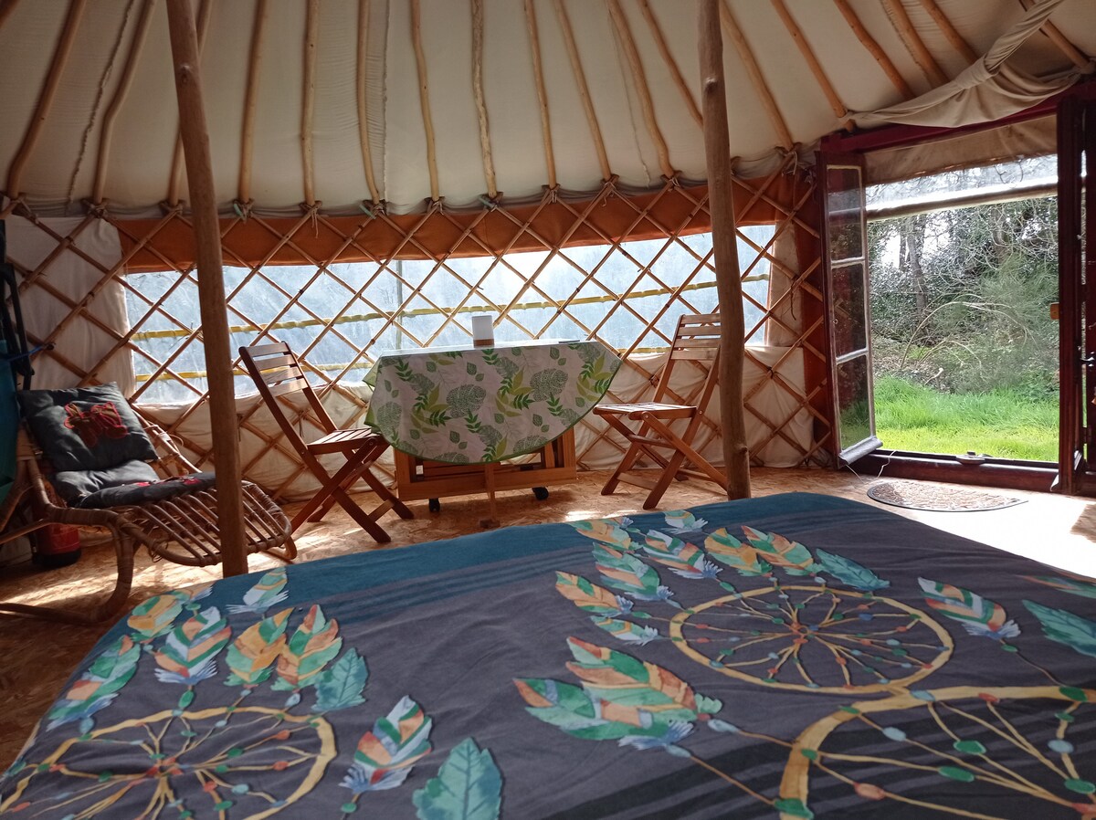 Tule ja naudi meie jurtat vaikses ja ebatavalises kohas talus (6 väljakut) ja mere lähedal. Sinu käsutuses on dušš, kuiv WC-pott ja suur küün toiduvalmistamiseks vajalike vahenditega. Hommikusöök talutoodetega on saadaval soovi korral ja lisatasu eest. Võid nautida ka talu üldkasutatavaid alasid (jalutuskäik koos loomadega, varjutatud nurgad köögiviljaaia ümber, talupood...)