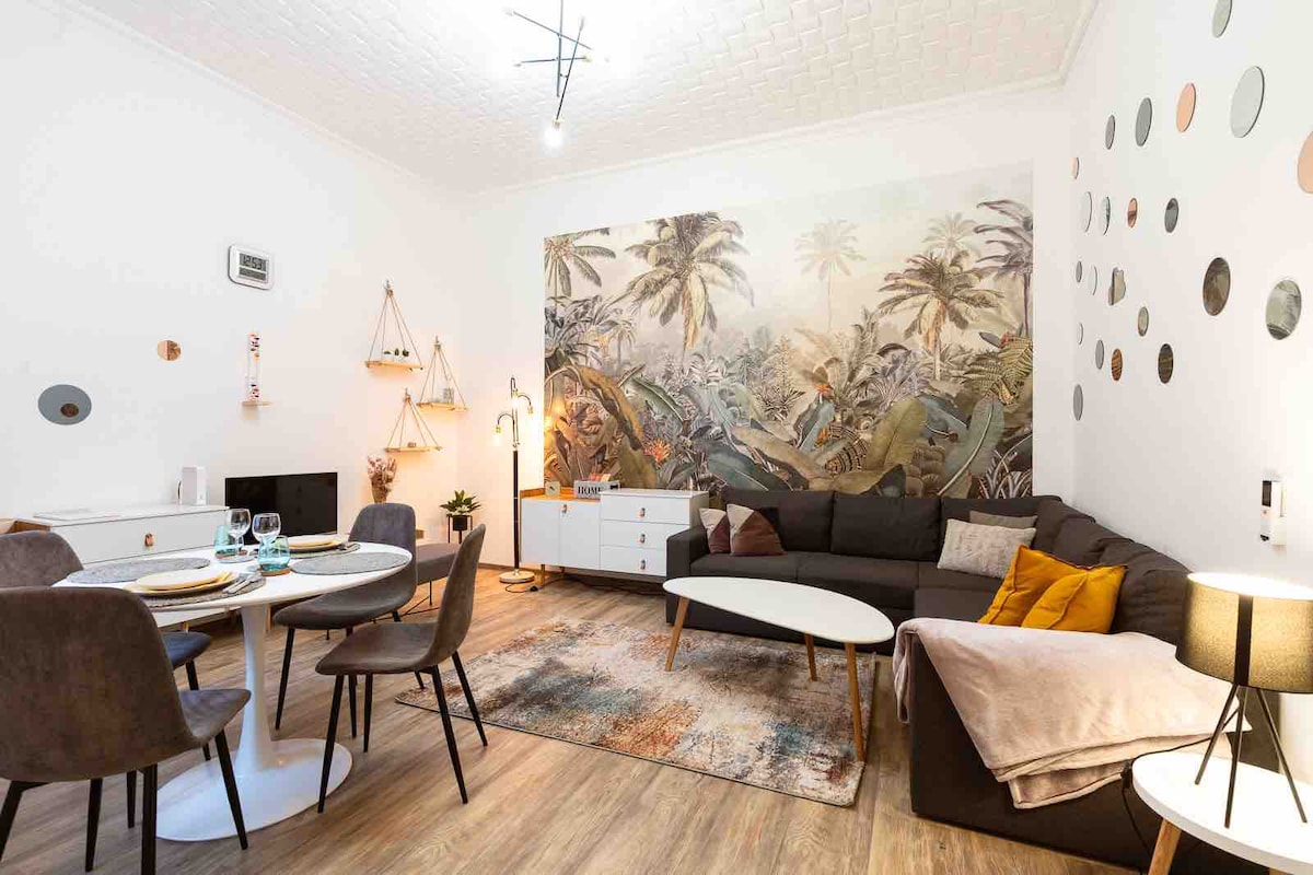 Perfectly located, bright and sunny 67 m² two-room apartment with a balcony and A/C, in the heart of Budapest, near the historic Jewish Quarter. This spacious apartment comfortably accommodates 2 to 4 guests in two separate rooms, featuring a king-size bed and a cozy sofa bed. In a vibrant downtown area, steps from the Great Synagogue and Szimpla, with restaurants, cafés, pubs, baths, supermarkets and major attractions like the Danube, Chain Bridge, Basilica, New York Café just minutes away.