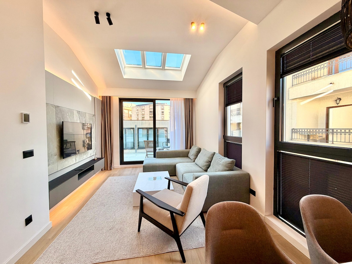 Experience our new family penthouse, boasting stunning sea views and a convenient hot tub just outside your door. This is the ideal retreat for families and friends seeking a luxurious escape for their well-deserved vacation. We're a short 8-minute walk from Becici Beach and a quick drive from the city center, offering the perfect balance between excitement and serenity. The penthouse even comes with private garage parking.