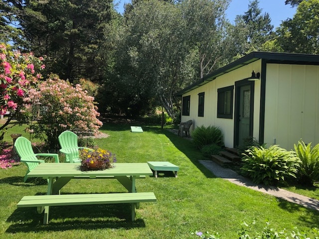 The Shed Guesthouse is located on one acre in a rural park-like setting with convenient access to Highway 101, 1/2-mile from Bandon Dunes Golf Resort, 4 miles from Bandon, and short distance from beaches, hiking and biking trails, kite boarding/surfing, restaurants at the Bandon Dunes, or cook in a fully equipped galley kitchen.