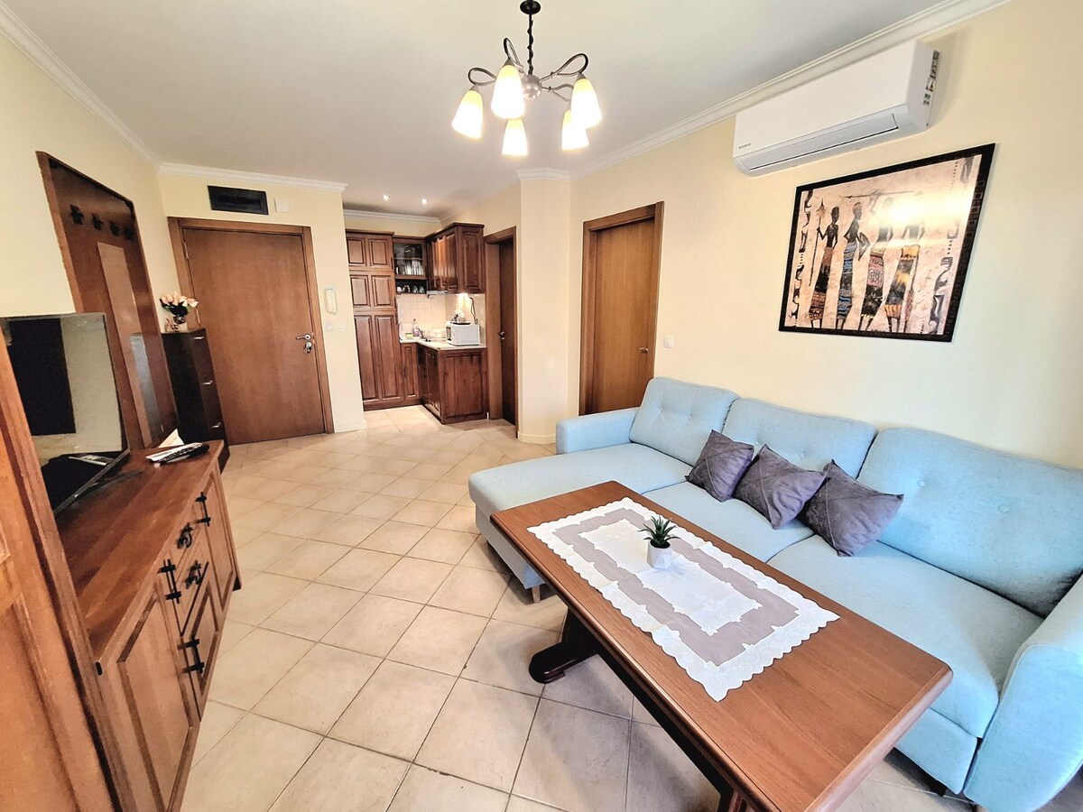 Tere tulemast meie päikesepaistelisse sadamasse Burgases! Selles hubases uhiuues korteris on 1 magamistuba, ühiskasutatav tuba, kus on kombineeritud köök ja elutuba, ning kaasaegne vannituba, mis sobib ideaalselt mugavaks peatumiseks. Sinu mugavuse huvides on olemas turvaline parkimine. Naudi rahulikku puhkust kenas naabruskonnas, vaid lühikese vahemaa kaugusel linna vaatamisväärsustest.