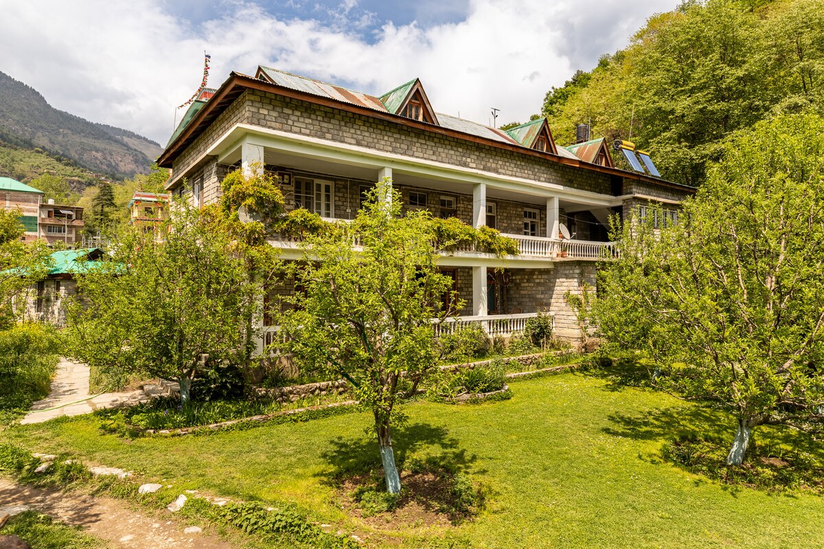 Maja Himaalaja südames, eemal linna kärajast. Naudi rahulikku vaadet orule, mida ümbritsevad ploom, õun, persimmon ja muud puud. Rahulik koht, mis sobib ideaalselt lõõgastavaks puhkuseks või tööreisiks. Ärka ja naudi hämmastavat vaadet mägedele, naudi lõõgastavat päeva rõdul raamatu lugemiseks või avasta paljusid lähedalasuvaid kohti ja seiklustegevusi; see asukoht pakub midagi kõigile.